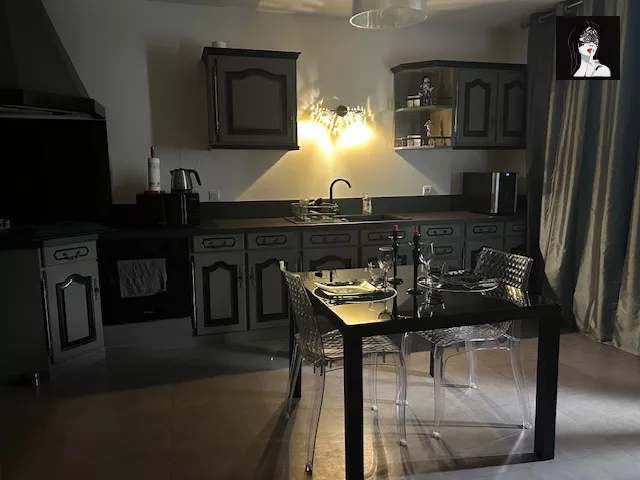 La cuisine équipée dans ce gîte pour les amoureux est un véritable petit bijou. Elle est aménagée avec des éléments fonctionnels, tout en conservant un charme rustique qui crée une atmosphère chaleureuse et romantique.